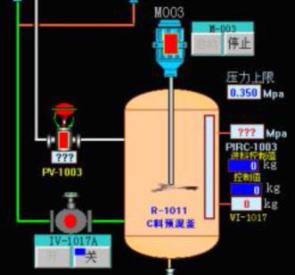重量控制值。當(dāng)料重低于控制值,相應(yīng)球閥自動(dòng)關(guān)閉。b.進(jìn)料:當(dāng)罐內(nèi)重量高于進(jìn)料控制值時(shí),系統(tǒng)關(guān)閉對(duì)應(yīng)閥門(mén)及電機(jī)(注:當(dāng)單條管線對(duì)應(yīng)多個(gè)進(jìn)料容器時(shí),保證所有容器重量控制值處于適當(dāng)值時(shí)方可進(jìn)料,任一容器為自鎖狀態(tài)則不可進(jìn)料)。